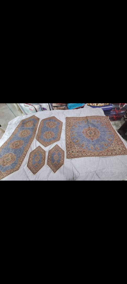 رومیزی ترمه یزدی چهار گوش، ابعاد 1در1،با یه لایه آستر زیر، در رنگبندی، مناسب رومیزی، سفره، روی اوپنی. ست 5تکه این کار هم موجوده